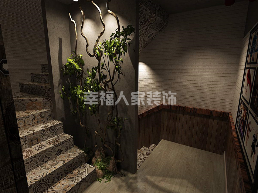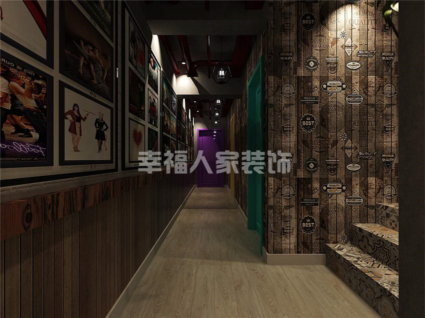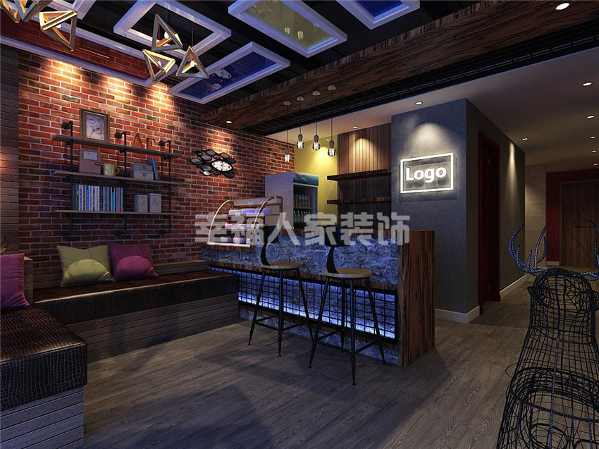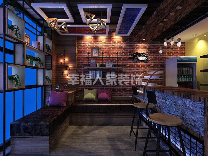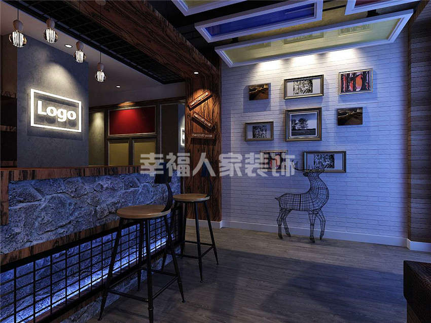 使用材料:铁艺、水泥漆、文化石、老船木、艺术壁画定制