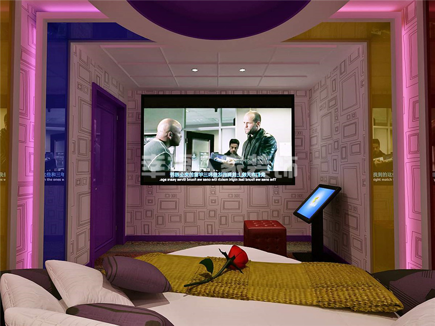 影咖在近几年时下流行的一种娱乐场所,区别于大众影院,它体现的更多是个性化,私属化。不同风格的定位,打造的影咖环境争奇斗艳,本案主要的设计思路不在风格上做巧取,而是以跳色的手法,融合不同的色彩感官,以赤橙黄绿青蓝紫七大主色为基底,丰富空间层次,让色彩与时尚元素结合,通过材质的传递,在娱乐的同时,感受时尚风华的绽放,每个单间都有属于自己的主题故事,让消费者面对自己不同的年龄,不同的文化层次去体验,不同的认知来享受着视听盛宴!