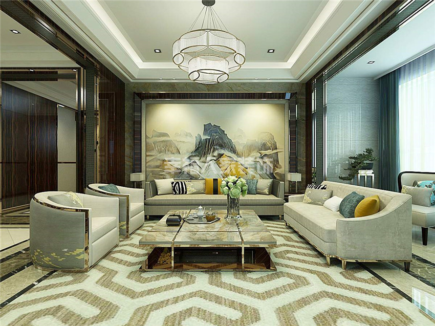 本案注重陈设合配置,着重于控制空间的欣赏性,典雅与品位。在呈现精简线条同同时,又蕴含奢华感,通过异材质的搭配质感与层次,体现更多的是东方美学的底蕴,而不是张牙舞爪的表现。