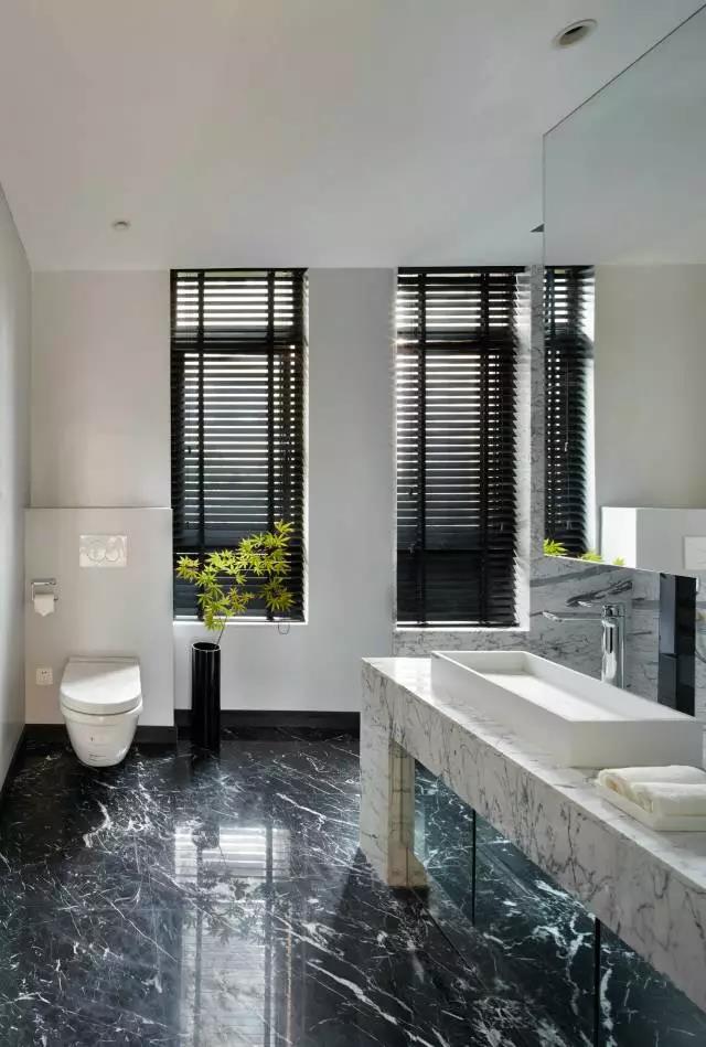 卫浴间要体现出简约、惬意的氛围,就必须在空间的布置上做到张驰有度。设计师将不同的功能区合理划分,尽量避免过于繁杂的物品堆放,用石材特有的粗犷纹理打破木材略显细腻和单薄,一粗一细既产生对比,又营造出十足的不饰雕琢的自然感,只有开阔的空间才能营造自然、放松的舒适感。