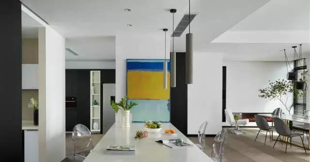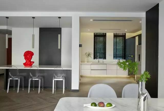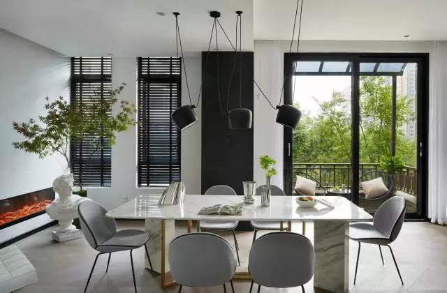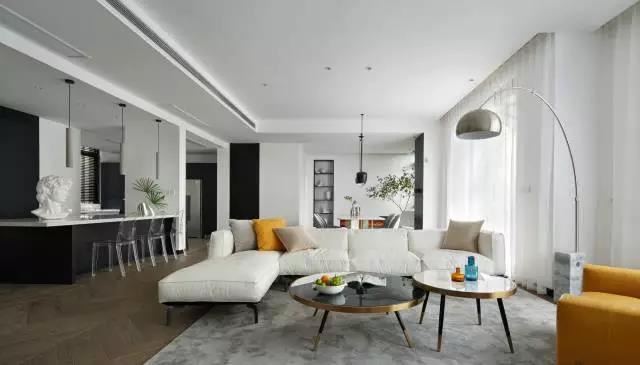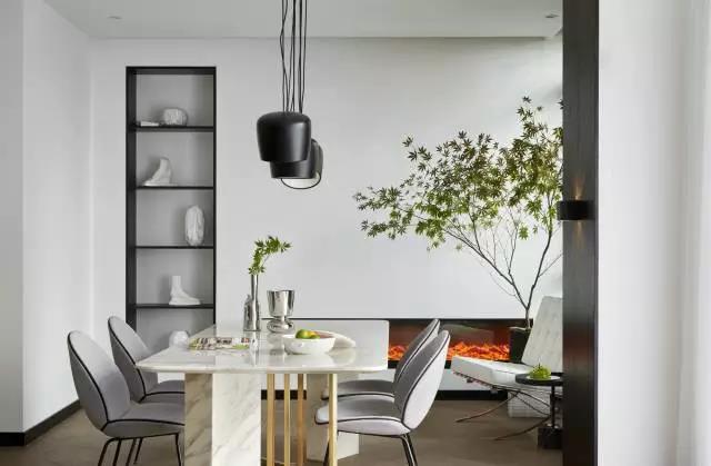 百搭白、中庸灰、炫酷黑这些现代极简风格在视觉上,总是可以搭配出一个“高冷”硬朗的气质。不另类又不迎合媚俗与人云亦云的现代设计风格,可以满足金融男业主对于审美和家的概念