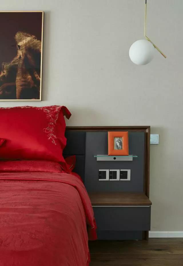 原木色、深棕色、灰色……这些颜色搭配在一起,让卧室多了一份理性的冷静。没有了繁复华丽的花样与纹饰,偏重于原木色的用料,为室内创造出一种自然简约的风范,充满了静谧、安宁。作为无彩色系的的组合,他们素雅简洁,现代感十足,是家居设计中高品质的“标配”。