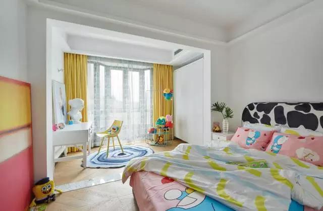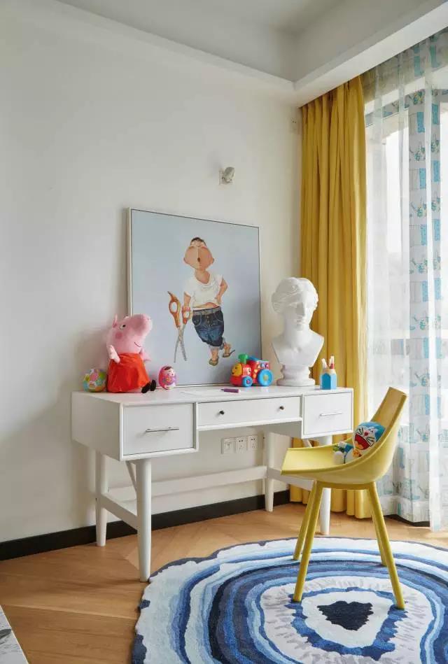 设计师以白色为整体基调,运用轻松、愉悦的色彩和空间搭配,不仅能刺激孩子充满活力,也能激发他的想象力,即使一个人睡觉也不会感到孤单和恐惧。人体石膏像、艺术画等软装的摆设,还可以培养孩子的“艺术天赋”。